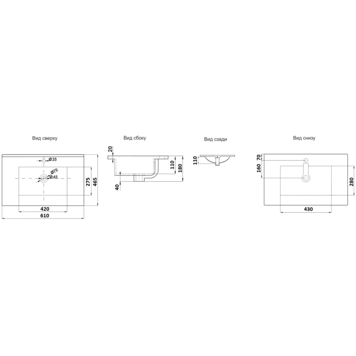 Раковина Brevita 9060MMB 61x46.5 см накладная черный матовый купить