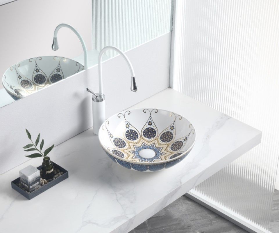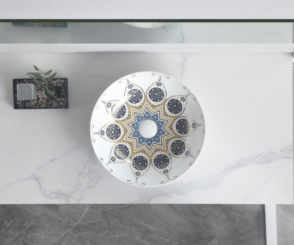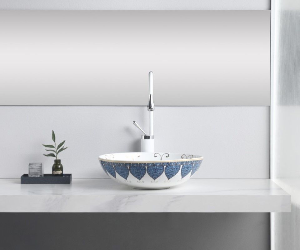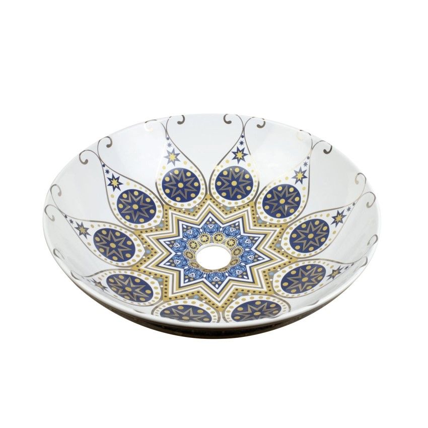 Раковина чаша Bronze de Luxe Lotos 5008, белый/синий купить
