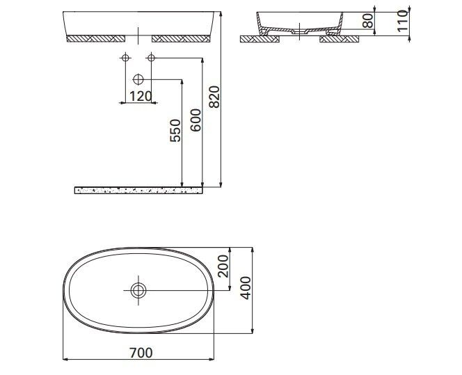 Creavit Loop LP170-00CB00E-0000 Раковина накладная 700*400 мм (белый глянцевый). Без перелива. Без отверстия для смесителя.