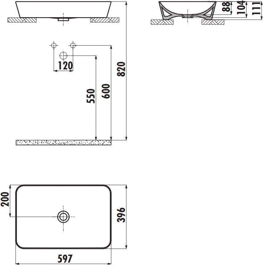 Creavit Ultra UL060-00BM00E-0000 Раковина накладная 600*400 мм (базальт матовый). Без перелива. Без отверстия для смесителя.