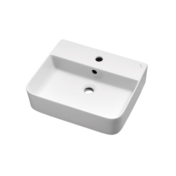 JOY 3, накладной умывальник для установки на столешнице, керамический, пристенный, с полкой для смесителя, 46х39х12 см