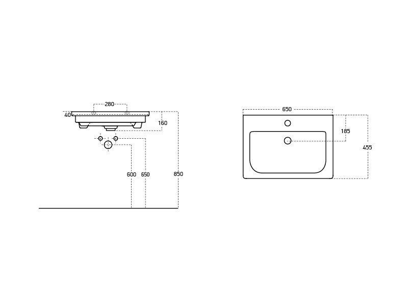 - Ширина раковины: 650 мм