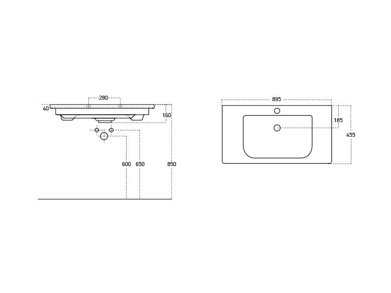 - Ширина раковины: 895 мм