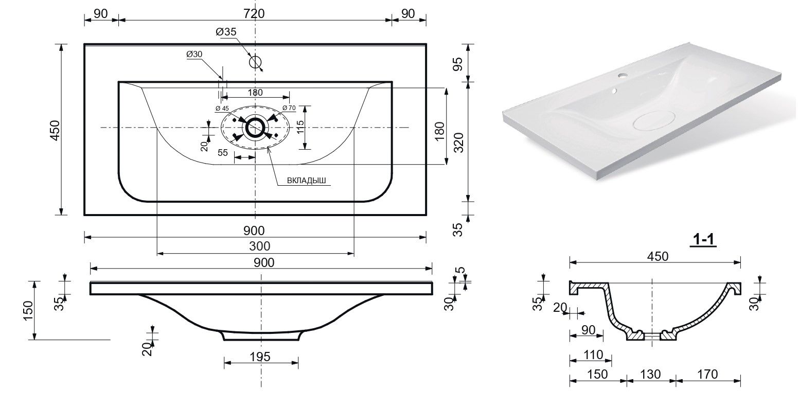Отверстия под смеситель:1