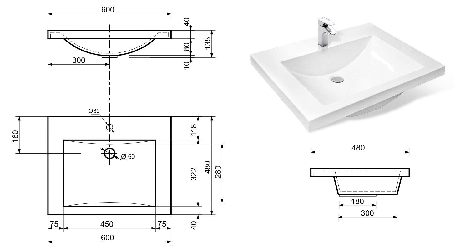 Материал:литьевой мрамор