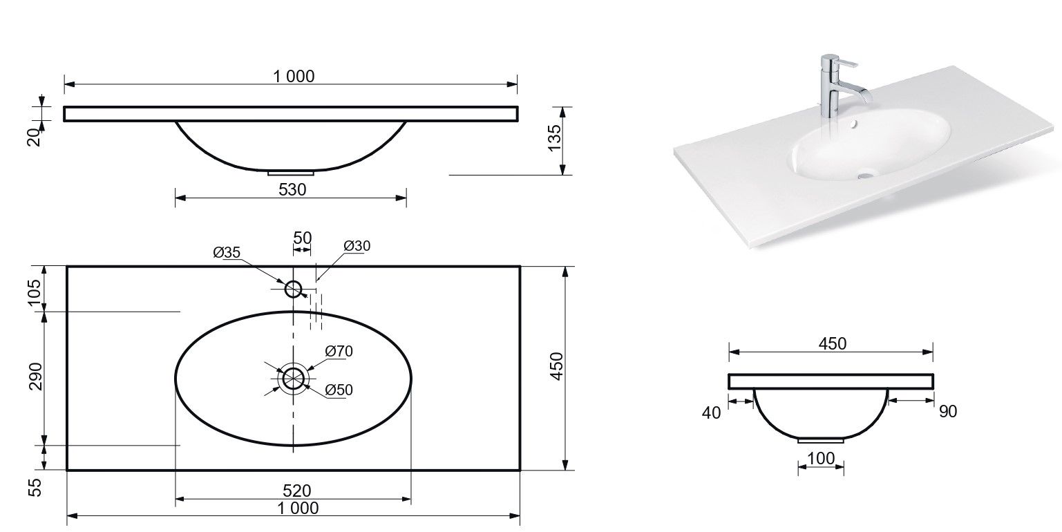 Отверстия под смеситель:1