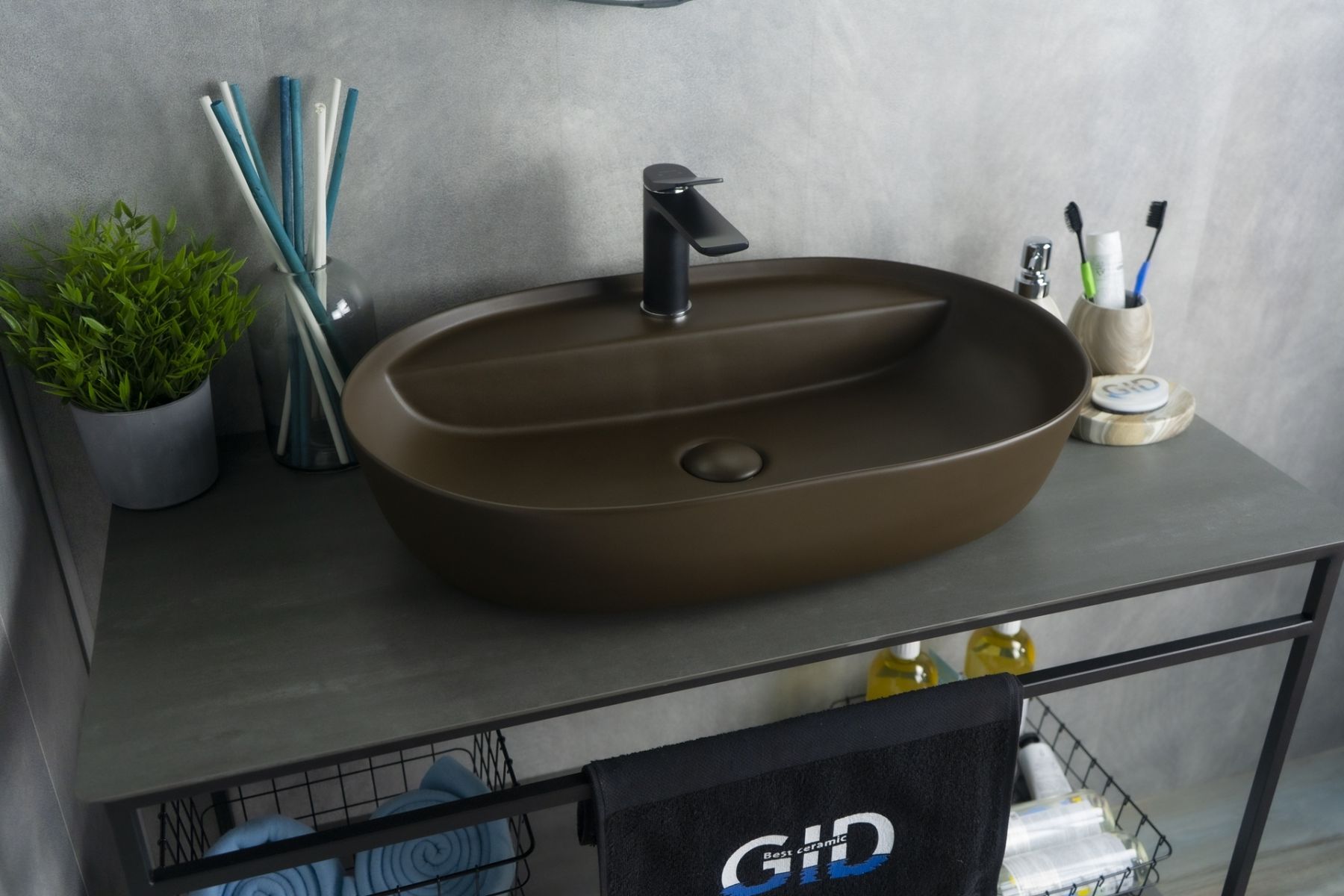 Раковина Gid Br1346 53342 накладная коричневая матовая 61x41x14 купить