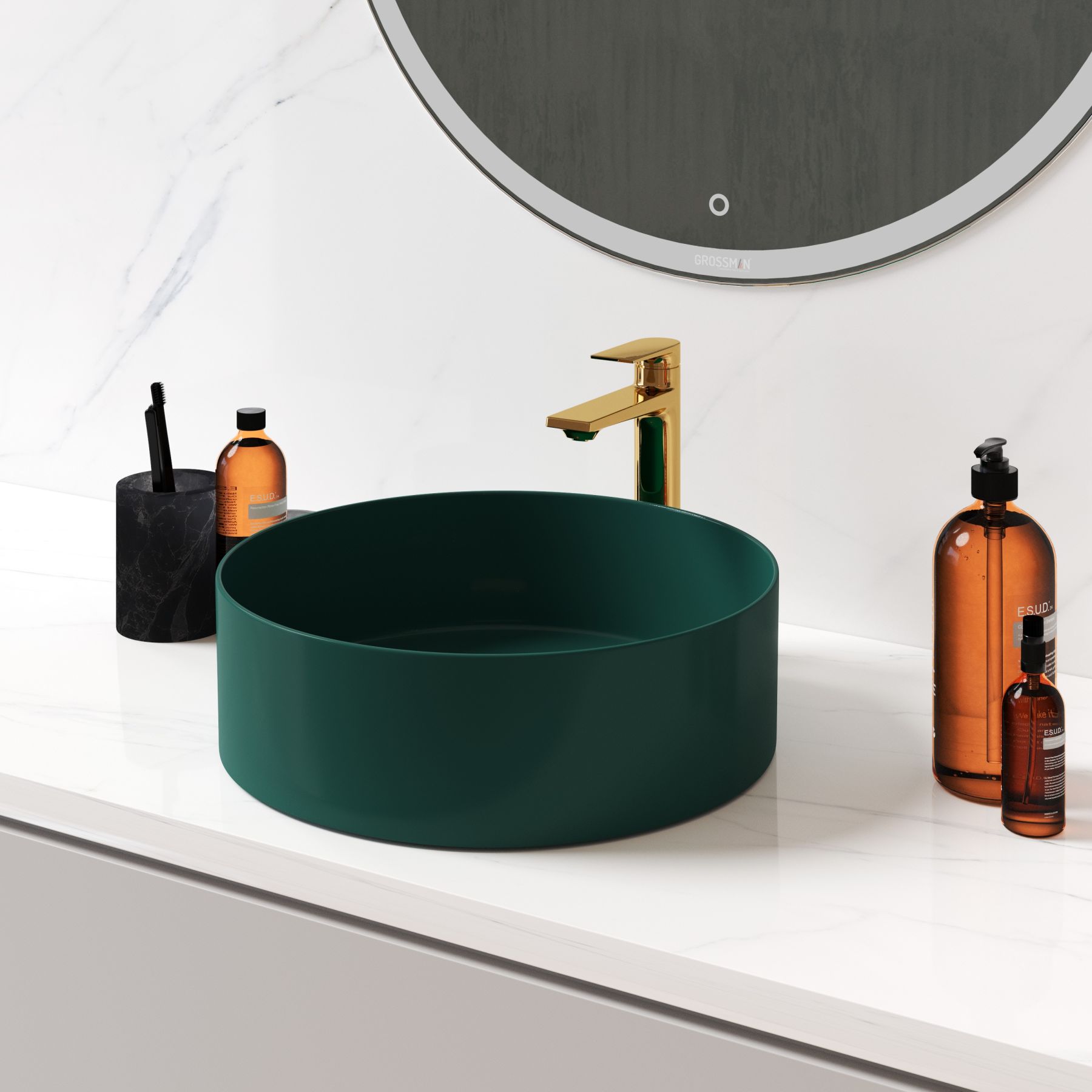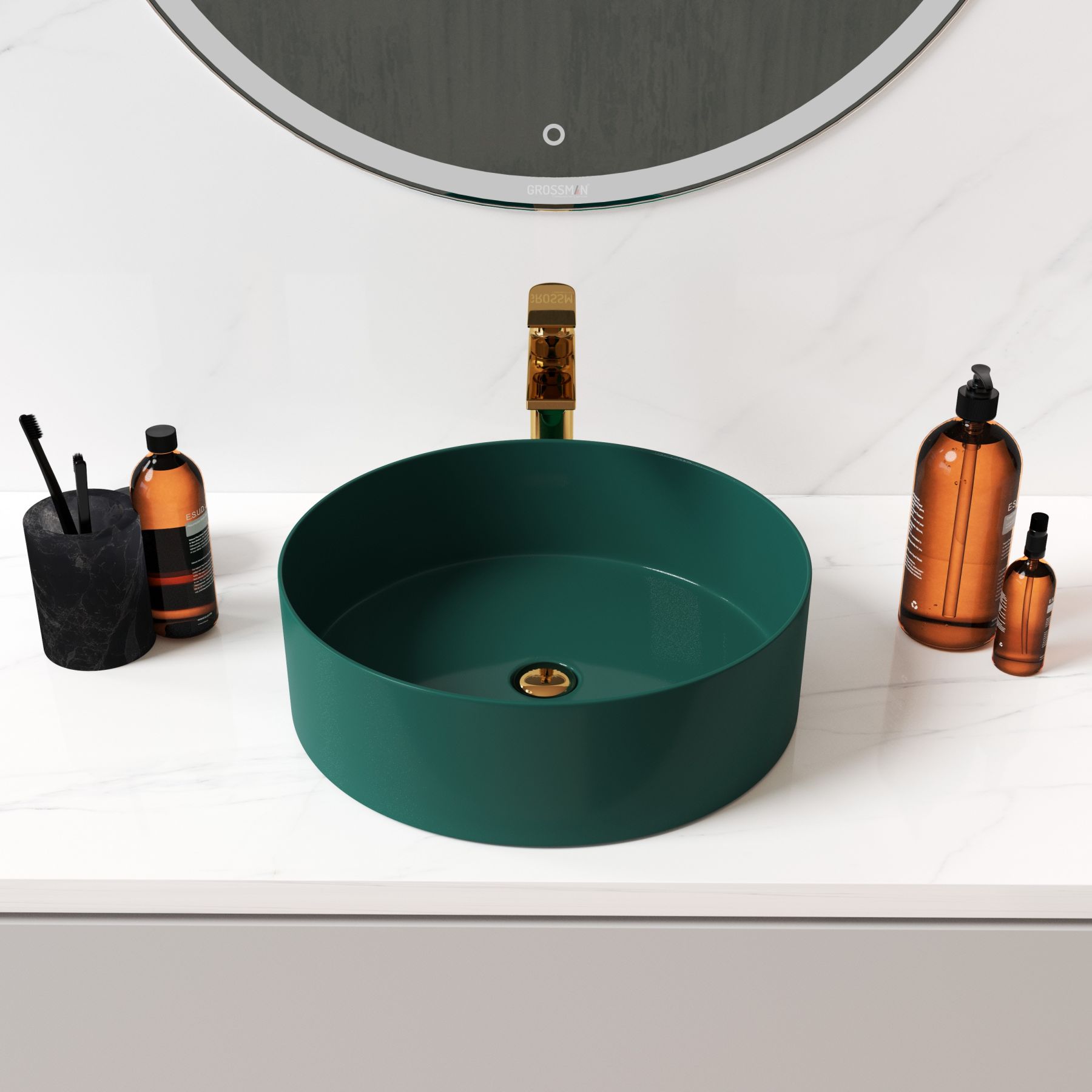 Раковина Grossman самый необходимый сантехнический элемент ванной комнаты, без которого утро будет не полноценным. Накладная раковина поможет сэкономить пространство и разместить под ней другие полезные элементы интерьера. Круглая форма раковины Grossman оптимальных размеров: шириной 40 см, глубиной 40 см, высотой 12 см, способствует комфорту использования и монтажа. Современный стиль, в котором выполнена раковина Grossman передается во всех элементах данной модели. Материалом, из которого произведена раковина является фаянс, данный материал отличается максимально гладкой поверхностью, и абсолютной гигиениченостью.