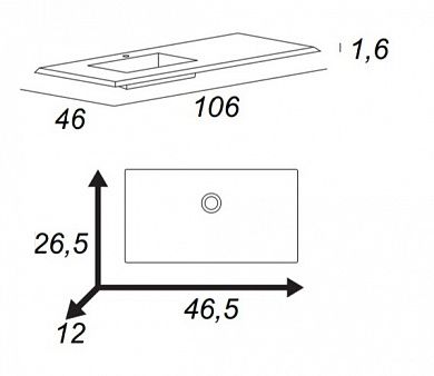 Раковина из искусственного мрамора правосторонняя 106х46х1,6 Solid surface CEZARES 50214 белый