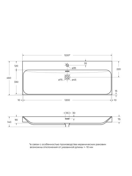 Раковина керамическая BelBagno BB-8078-120, 1220x460x140 белый