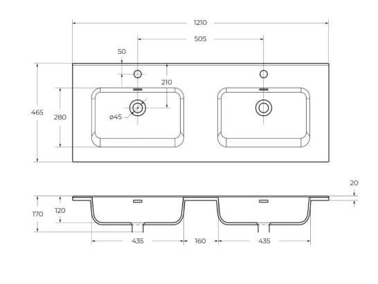 Раковина керамическая BelBagno с двумя чашами BB1200-2-ETL, 1210x460x175 белый