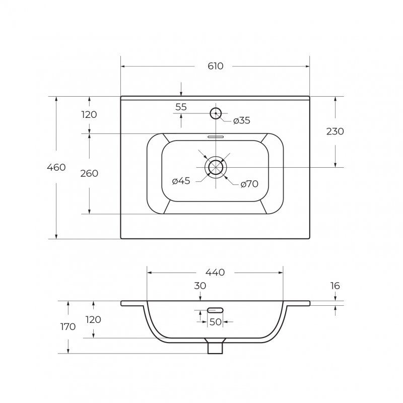 Раковина керамическая CEZARES 60 см, CZR-8095-60 белый