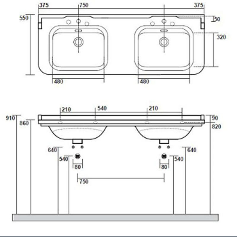 Раковина Kerasan Waldorf 4143K1bi/cr*3 Белая 150 см купить