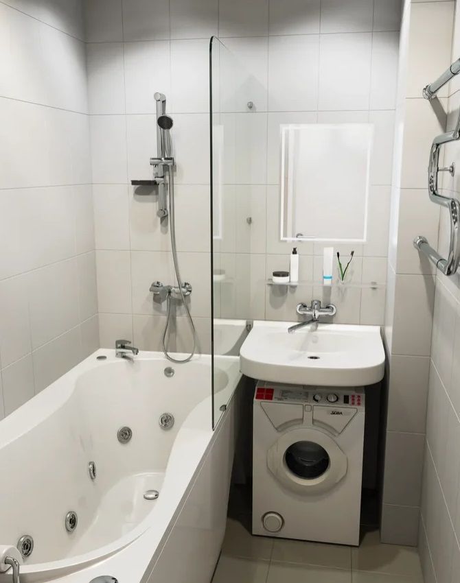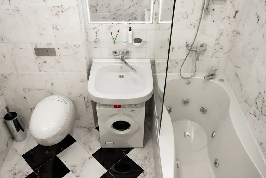 Раковина создана в соответствии с правилами установки стиральных машин под раковину, согласованными с Ростестом. Раковина Кувшинка поставляется в комплекте с необходимыми для монтажа элементами:2 кронштейна, метизы и сифон. Смеситель не входит в комплект поставки.