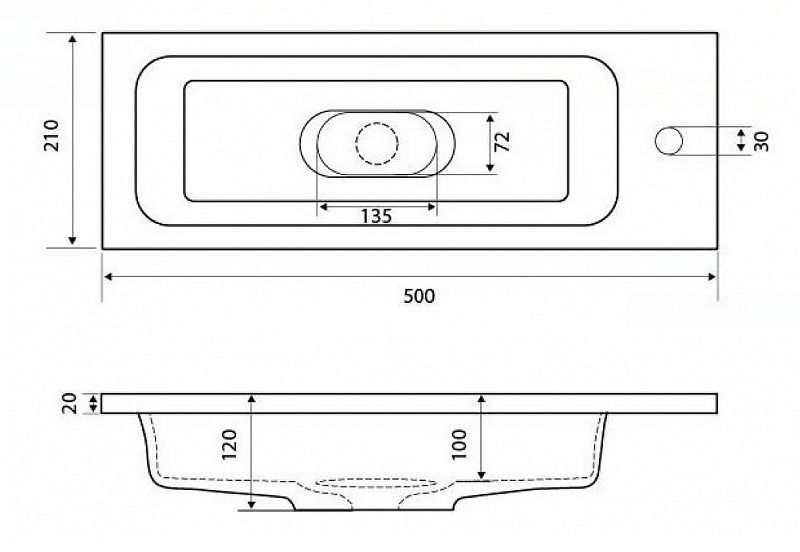 - Отверстие для смесителя: 1