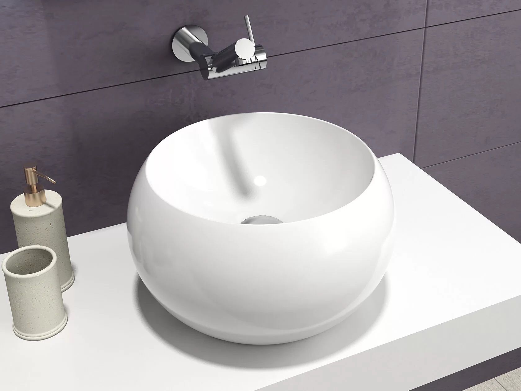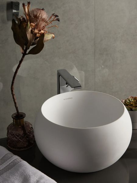 Раковина из искусственного камня для ванной комнаты круглой формы. Дизайн модели необычен и уникален, побуждает пофантазировать над использованием в интерьере. Конструкция полая внутри, что обеспечивает ее легкость. Однако внешне кажется, что раковина высечена из цельного камня. Palla имеет матовую, бархатистую поверхность. Благодаря выпуклой структуре стенок чаши вся поверхность раковины доступна визуально, что позволяет максимально выгодно презентовать ее окружающим. Полимерный материал принимает температуру окружающей среды, поэтому в жилом пространстве данная модель раковины всегда будет приятной на ощупь.Данная модель устанавливается на поверхность столешницы или мебели накладным способом сверху. Чаша обладает большей глубиной, чем многие накладные раковины бренда Montebianco.Уход за раковиной из искусственного камня прост: в большинстве случаев достаточно протереть поверхность влажной губкой с чистящим средством. Материал не впитывает влагу, не порист, непроницаем для плесени, бактерий и грибков.