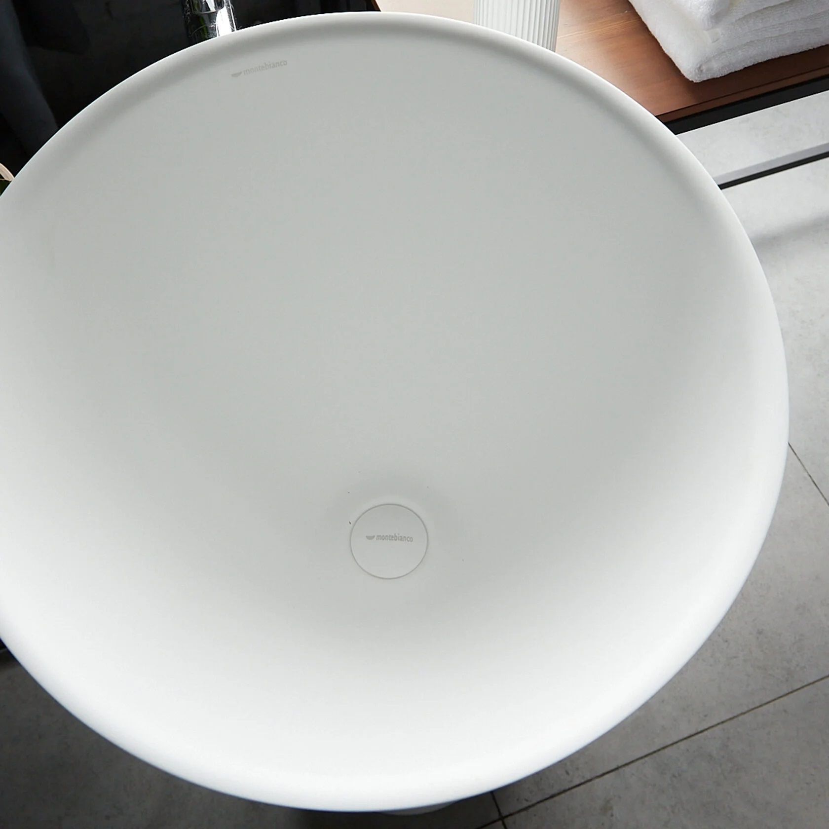 Раковина из искусственного камня для ванной комнаты. Похожие модели – Montebianco Pisa и Pisa Rubinetto.Модель напольного размещения. Безусловным практическим и эстетическим преимуществом является коническая форма. Раковина занимает мало места на полу, при этом за счет расширения к верху функционально очень удобна: вода не разбрызгивается и не выплескивается из объемной, чуть наклоненной к пользователю чаши. Благодаря большой видимой площади белоснежно-матовой, бархатистой поверхности великолепно выглядит в интерьере, является самостоятельной композицией. Популярна среди владельцев частных домов с просторными, светлыми помещениями ванных комнат.Высота раковины и небольшой наклон чаши удобны как для высоких людей, так и небольшого роста, в том числе детей. Крепление смесителя либо к стене, либо напольное, на ножке, подчеркивает современный дизайн и технологичность конструкции. Материал не впитывает влагу, не порист, непроницаем для плесени, бактерий и грибков.Отличия от моделей Pisa и Pisa Rubinetto – в размерах чаши (у Pisa Cono она более объемная), форме (две другие модели – прямые) и месте размещения смесителя (в Pisa Rubinetto он устанавливается на поверхность раковины).