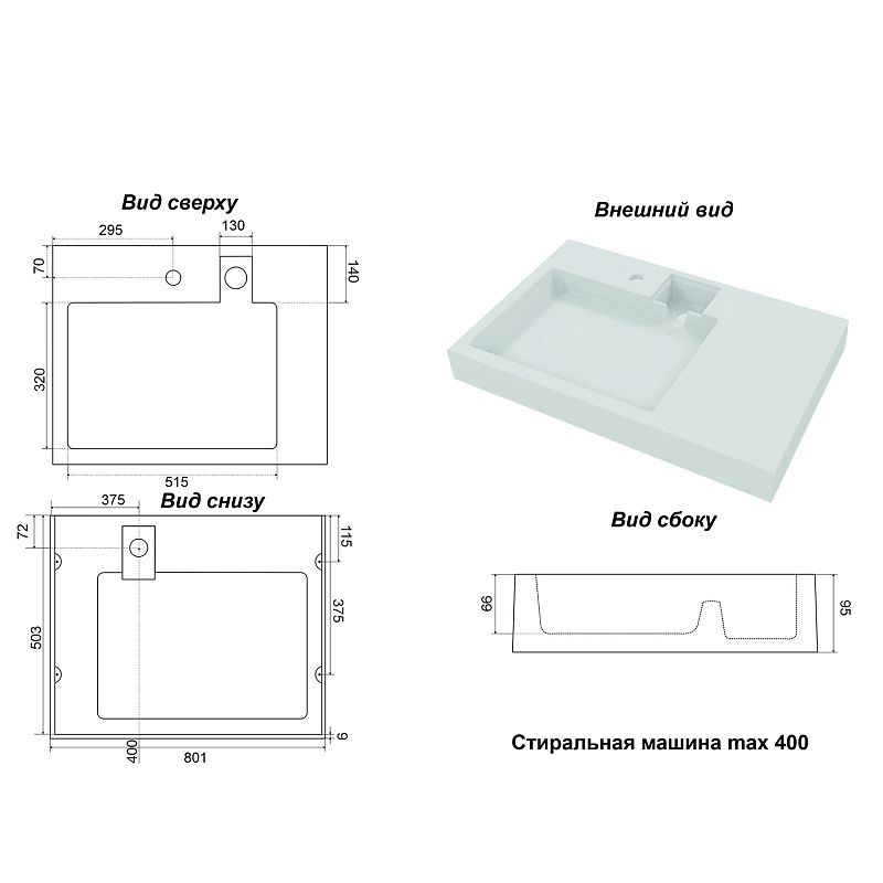 - Возможность установки над стиральной машиной:да