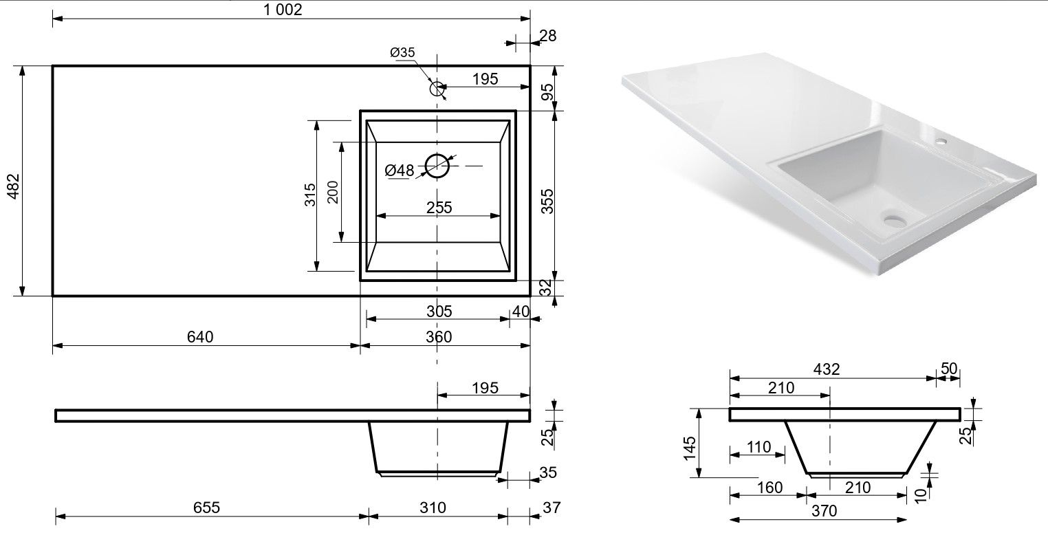 Отверстия под смеситель:1