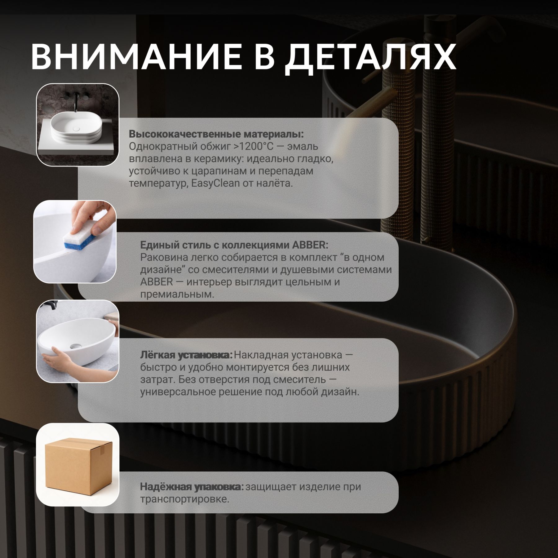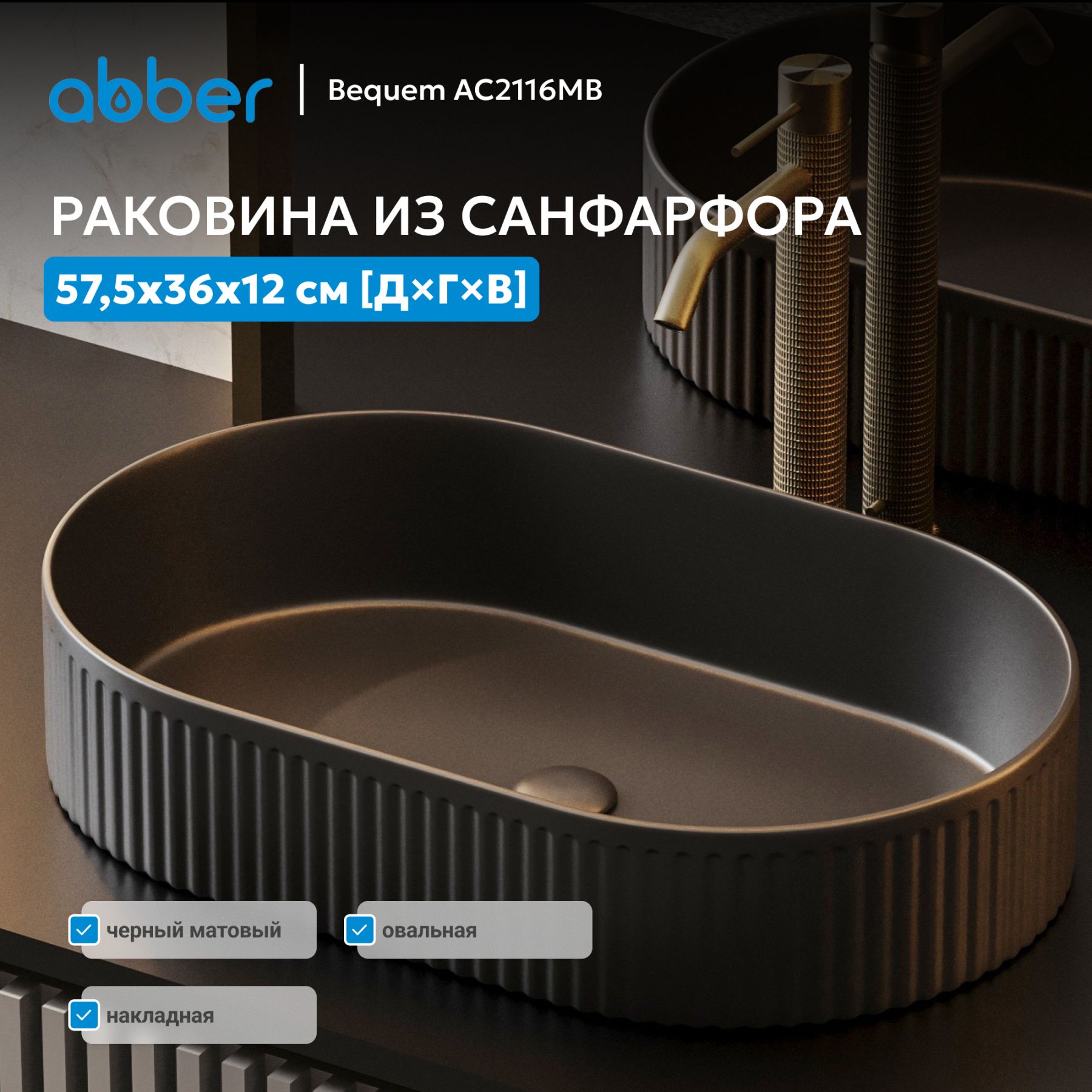 Раковина накладная ABBER Bequem AC2116MB 57 см чёрный матовый купить