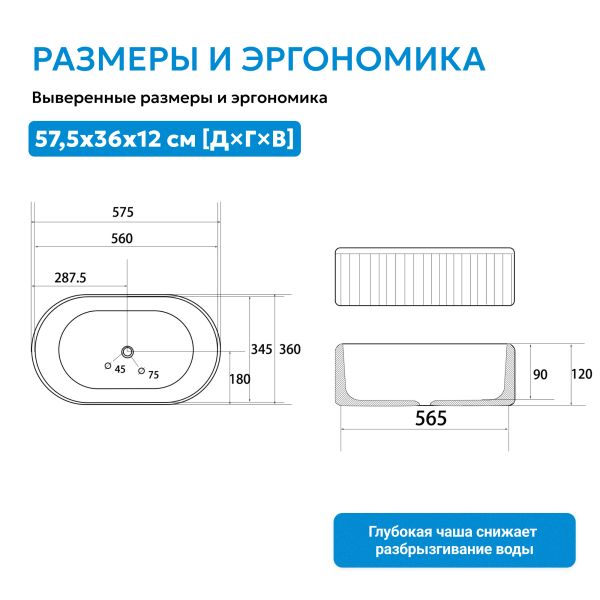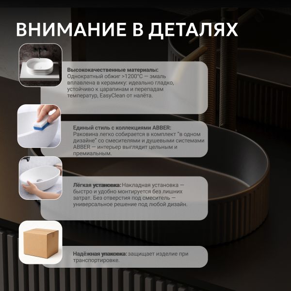 накладные раковины ABBER можно установить на столешницу, тумбу, консоль