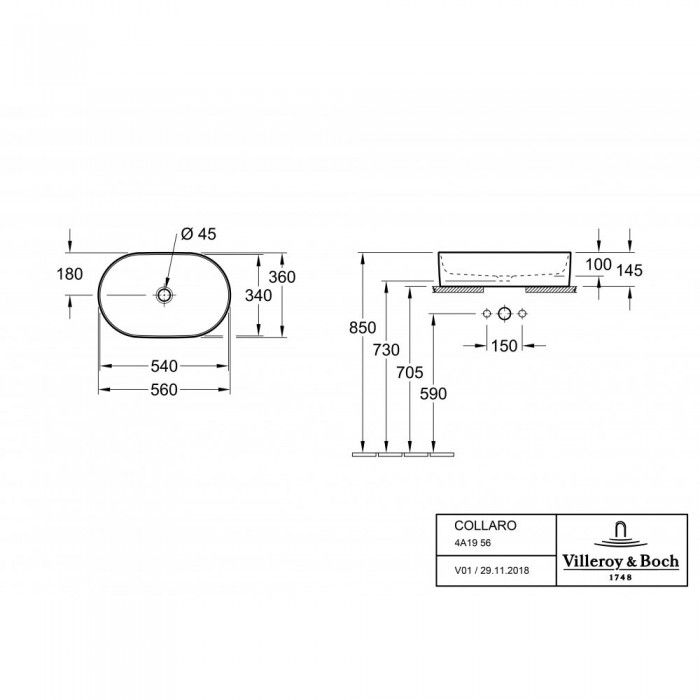 Раковина накладная Villeroy Boch Collaro 36 x 56 см 4A195601