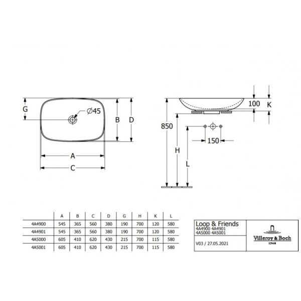 Раковина накладная Villeroy Boch Loop&Friends 4A4901i4 560 x 380 mm Graphite CeramicPlus графит купить