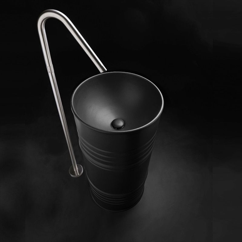 Раковина напольная Kerasan Artwork Barrel 4742K31 45см слив в пол чёрный матовый купить