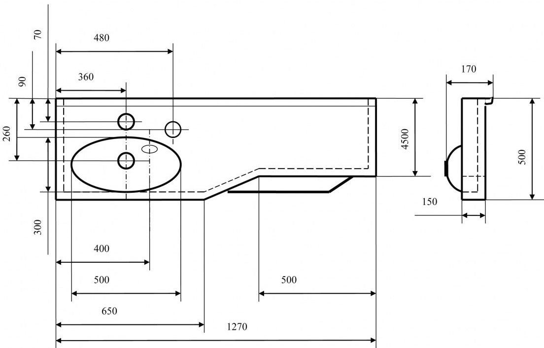 Раковина подвесная Акватон Отель левая 130см белый 1A70113WOT01L купить
