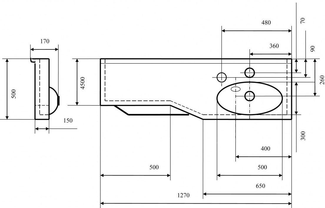 Раковина подвесная Акватон Отель правая 130см белый 1A70123WOT01R купить
