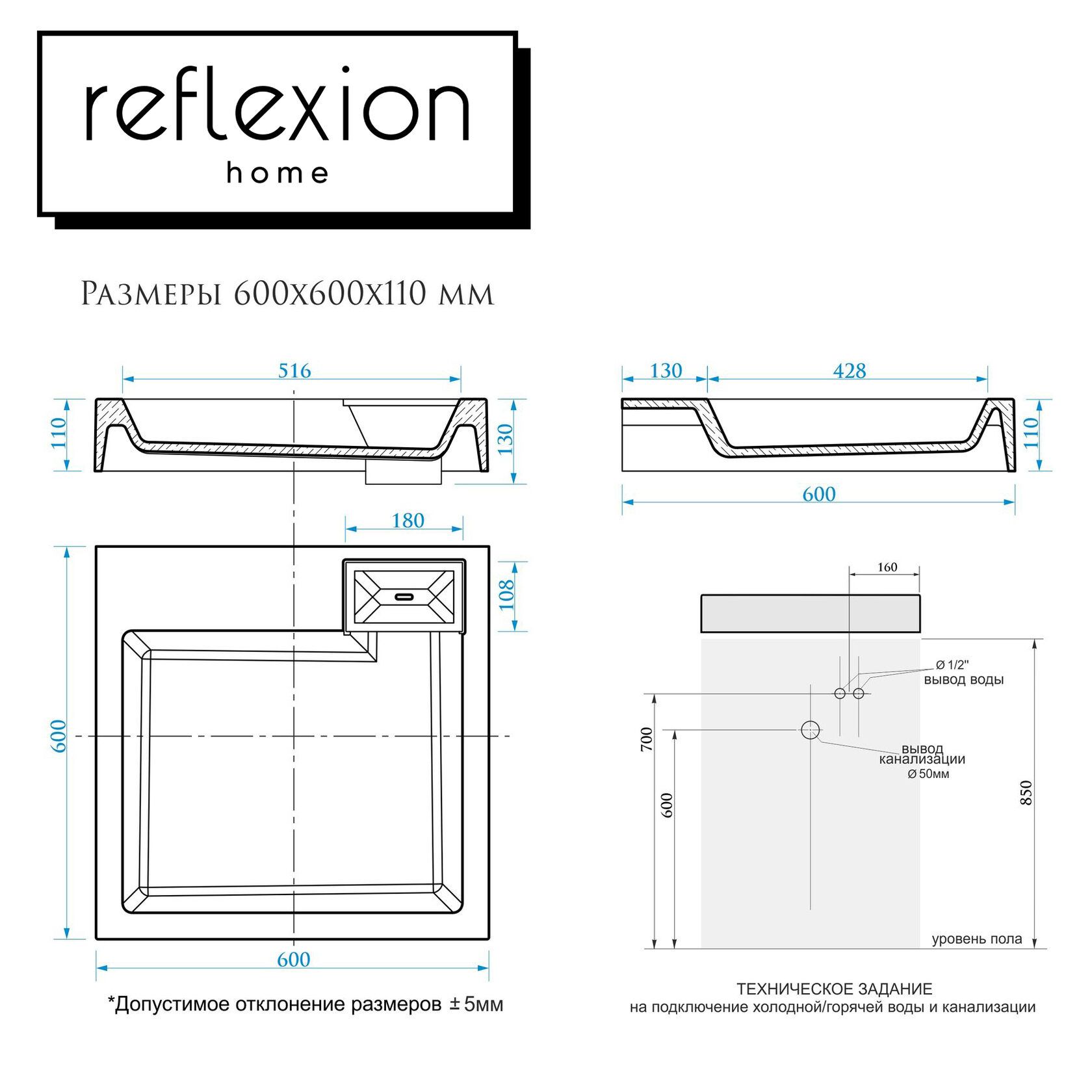 Раковина Reflexion Sigma RX6060SI белая 60x60