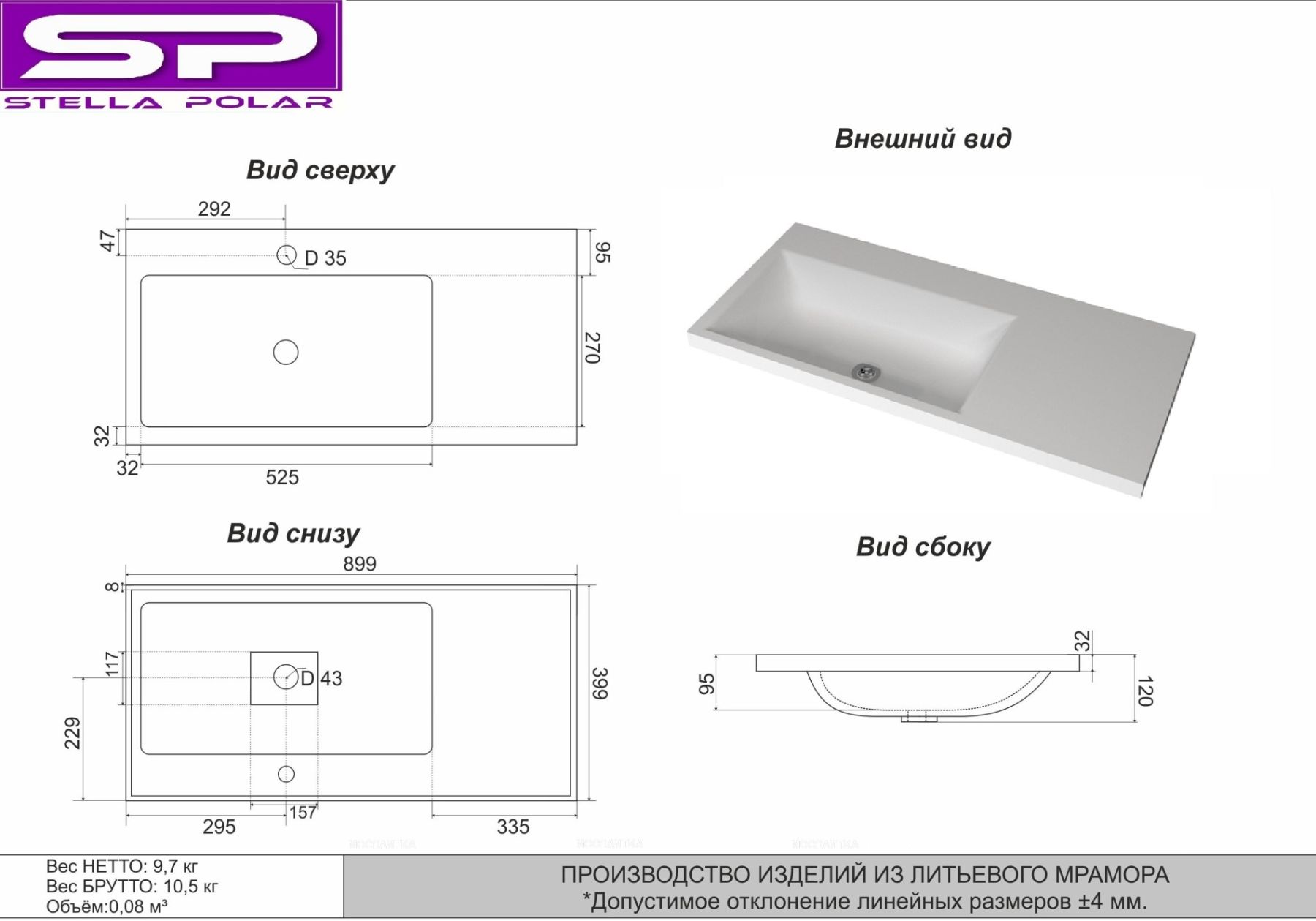 Раковина Stella Polar Одилия SP-00001636 левая 90см белый купить