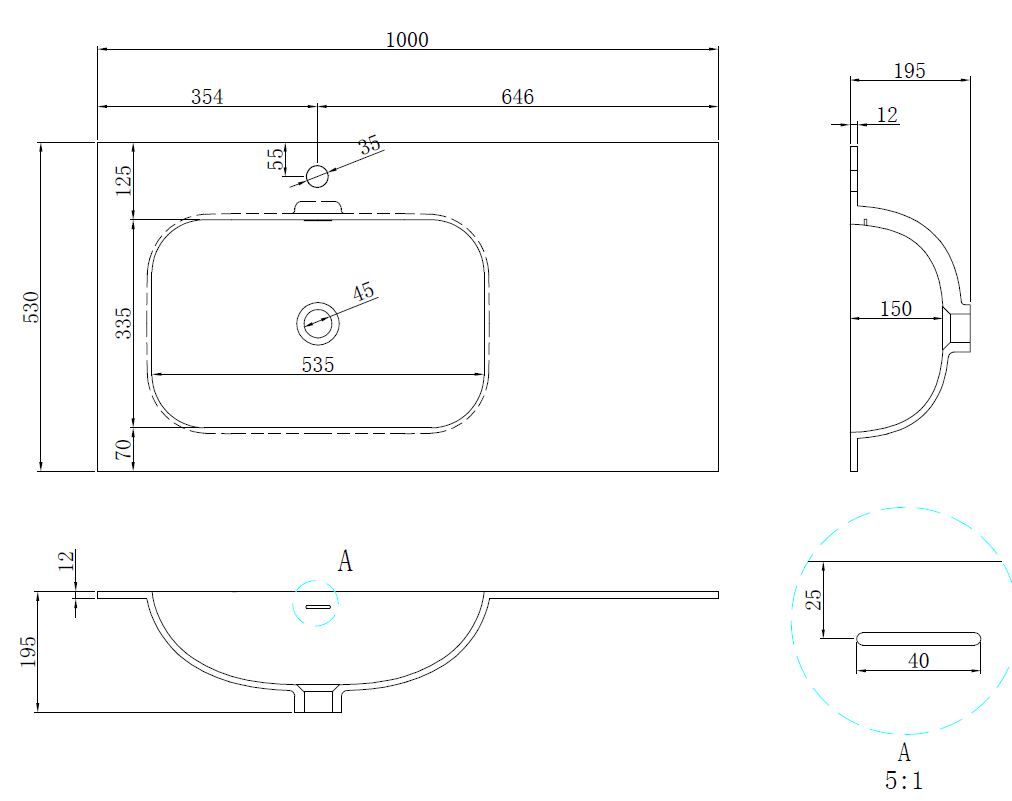 Отверстия под смеситель:1
