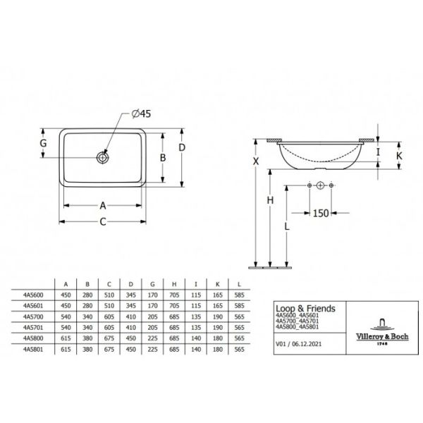 Раковина встраиваемая Villeroy Boch Loop & Friends 4A580101 белый купить