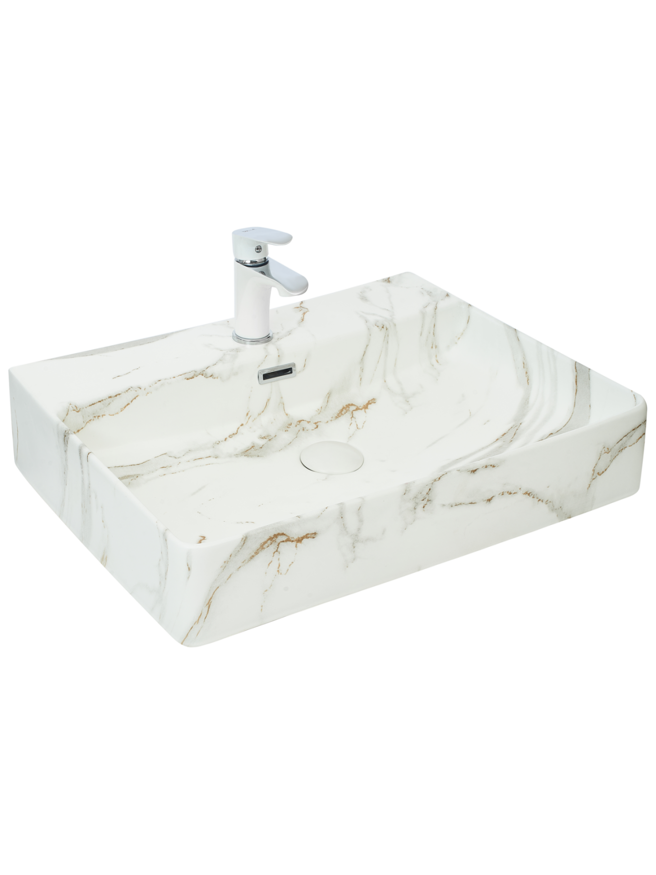 Раковина Weltwasser накладная мрамор белая с серым 600х420х120 WW ELBACH 2173 M845 10000004543
