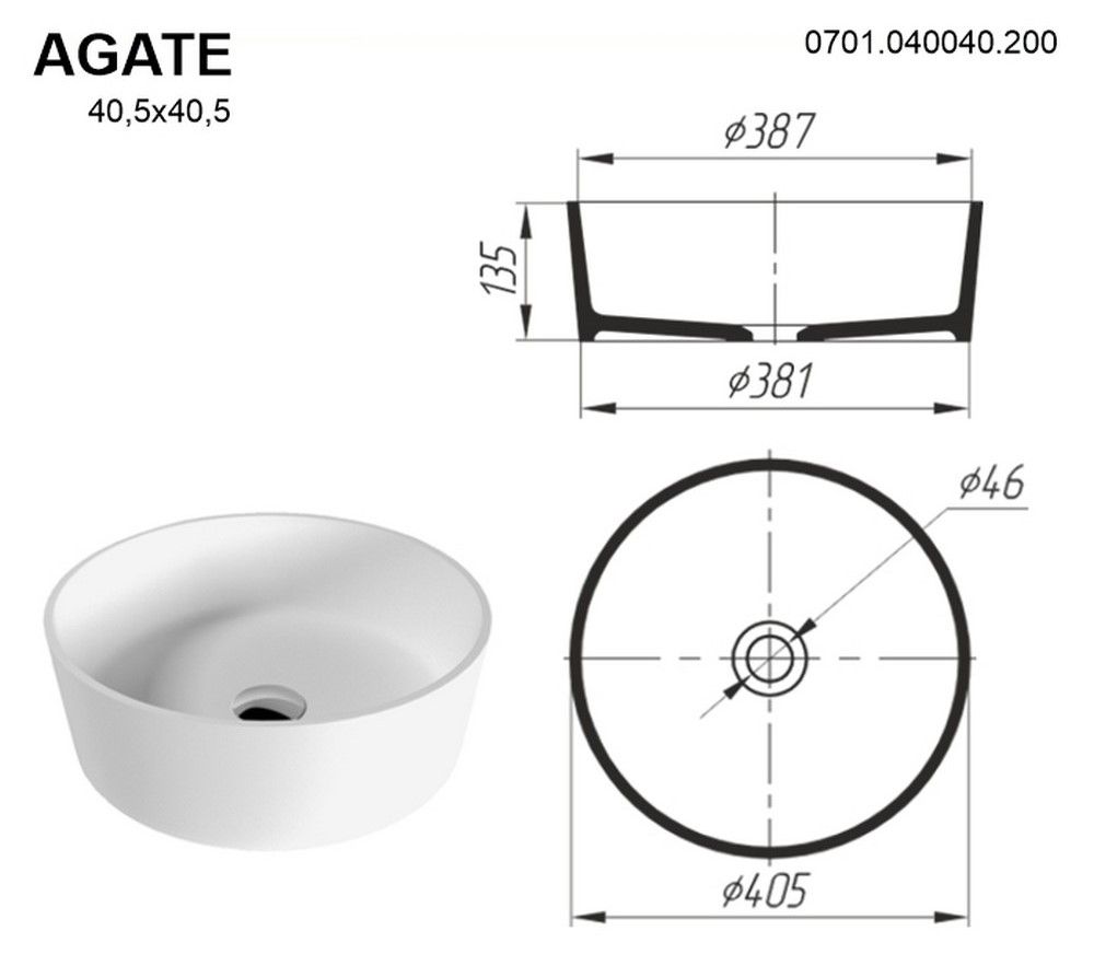 Раковина Whitecross Agate 0701.040040.200 40см белый матовый