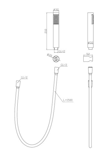 Ручной душ BelBagno со шлангом и держателем, хром, UNO-DFS-CRM