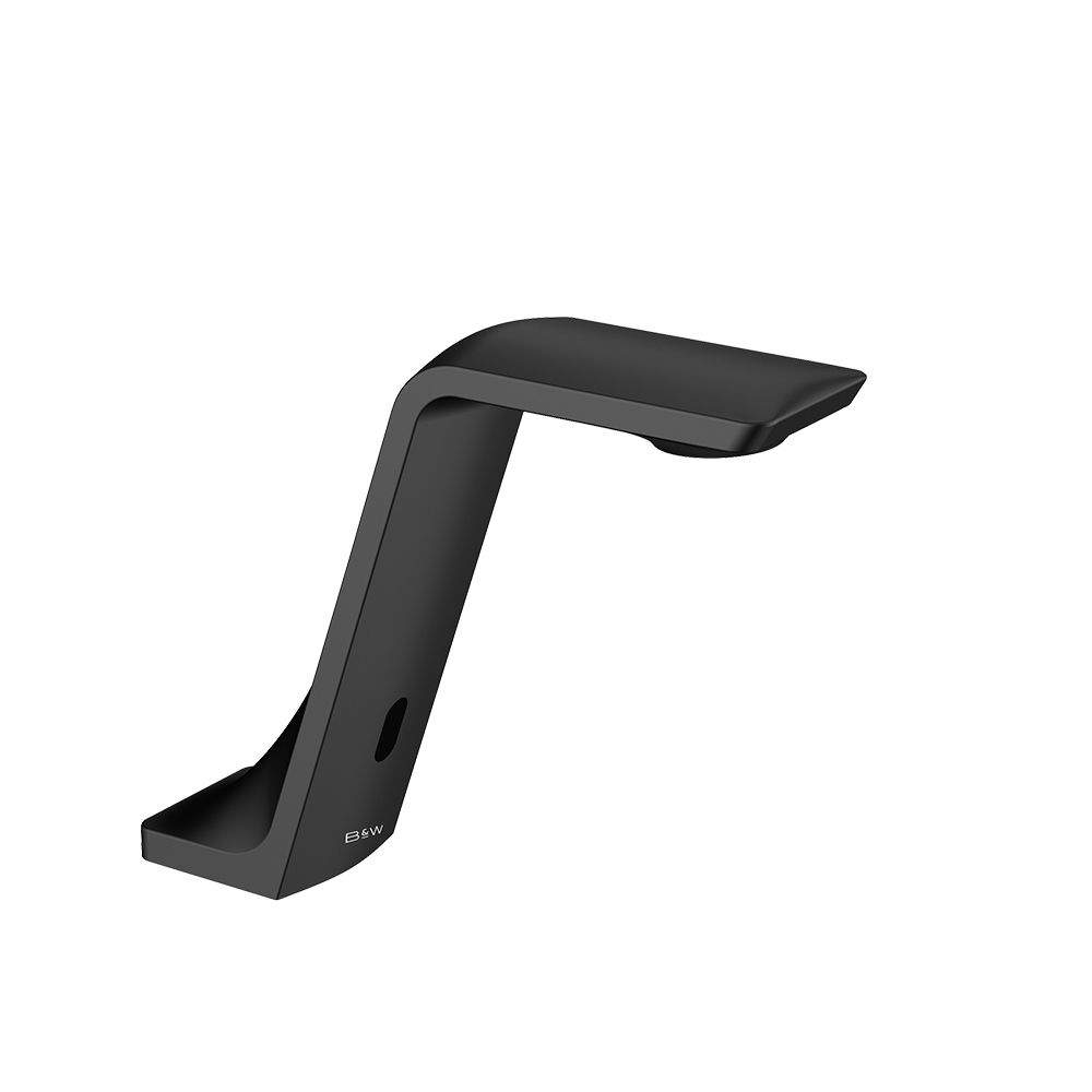 Сенсорный смеситель на одну воду датского производителя Black&White.Корпус выполнен из сантехнической латуни и окрашен черной матовой краской .Способ срабатывания реализован через инфракрасный датчик, который работает от аккумулятора постоянного тока. Данный продукт будет актуален для санузлов повышенной проходимости. Концепция изогнутого с -образного корпуса гармонично вольется в современные интерьеры, а наклон корпуса вперед позволяет направить поток воды ближе к центру раковины для удобного мытья рук.