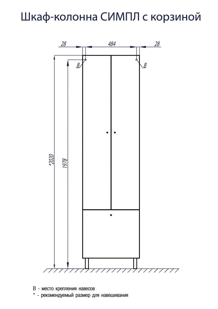 Шкаф-колонна Акватон Симпл с бельевой корзиной белый 1A137403SL010