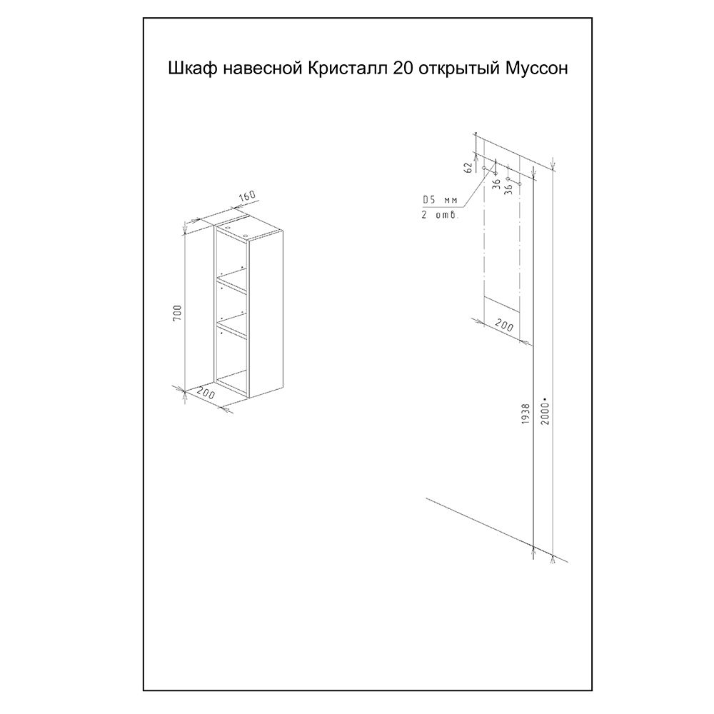 Шкаф навесной открытый Бриклаер Кристалл 4627125414602 20 см муссон