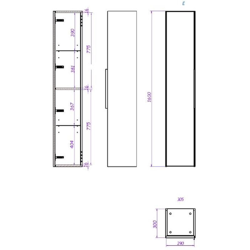 Пенал LA FENICE SIMPLA 30,5 FNC-05-SIM-C-30 (подвесной, 30,5*30*160, бежевый матовый), шт