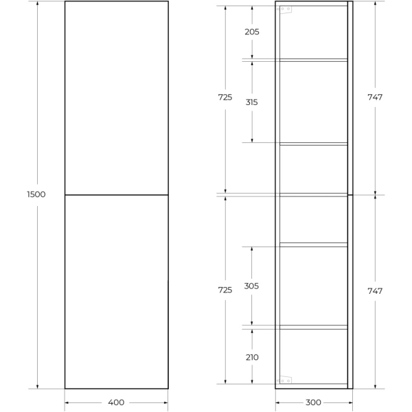 Шкаф-пенал подвесной BelBagno с двумя распашными дверцами с доводчиками, с двумя полками, универсальный, Rovere Nature, 400x300x1500, DUE-1500-2A-SC-RN-P дуб натуральный