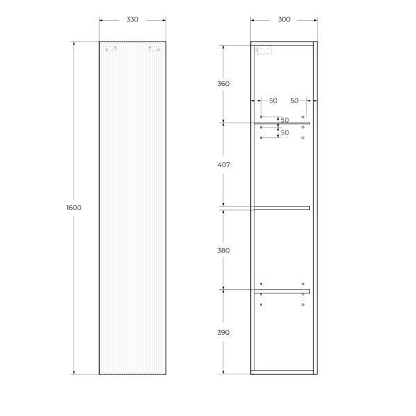 Шкаф-пенал подвесной BelBagno с фрезерованной ручкой с торца фасада, одной распашн. дверц. доводчик., дв. полки, ун.,330x300x1600, UNO-1600-1A-SC-AO Голубой матовый