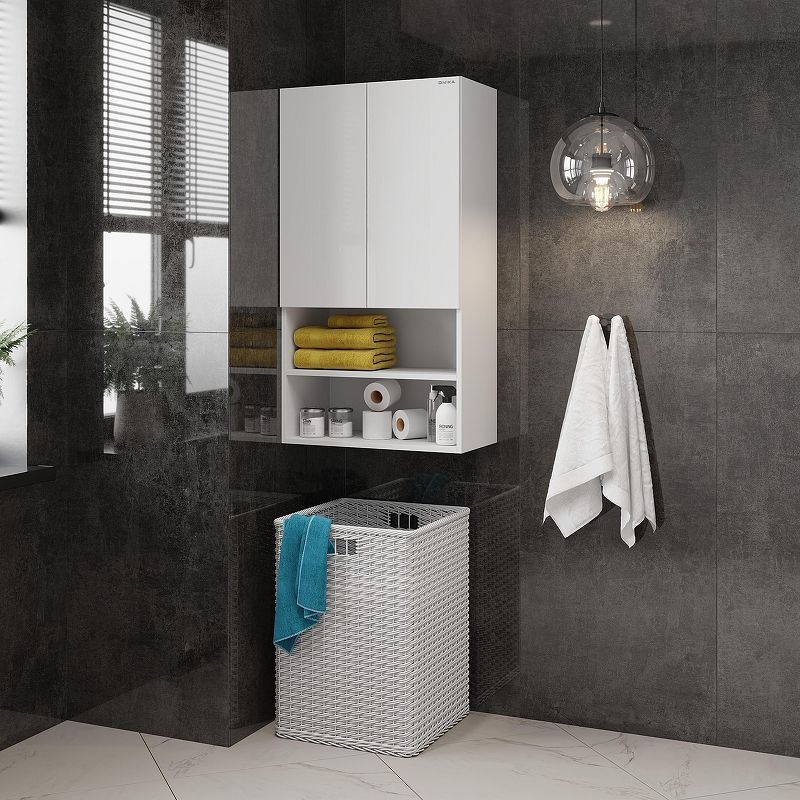 Навесной шкаф для ванной комнаты Onika Маркус Нова 60, благодаря лаконичной прямоугольной форме и универсальному белому цвету, подойдет к любому интерьеру ванной комнаты и не займет много места.