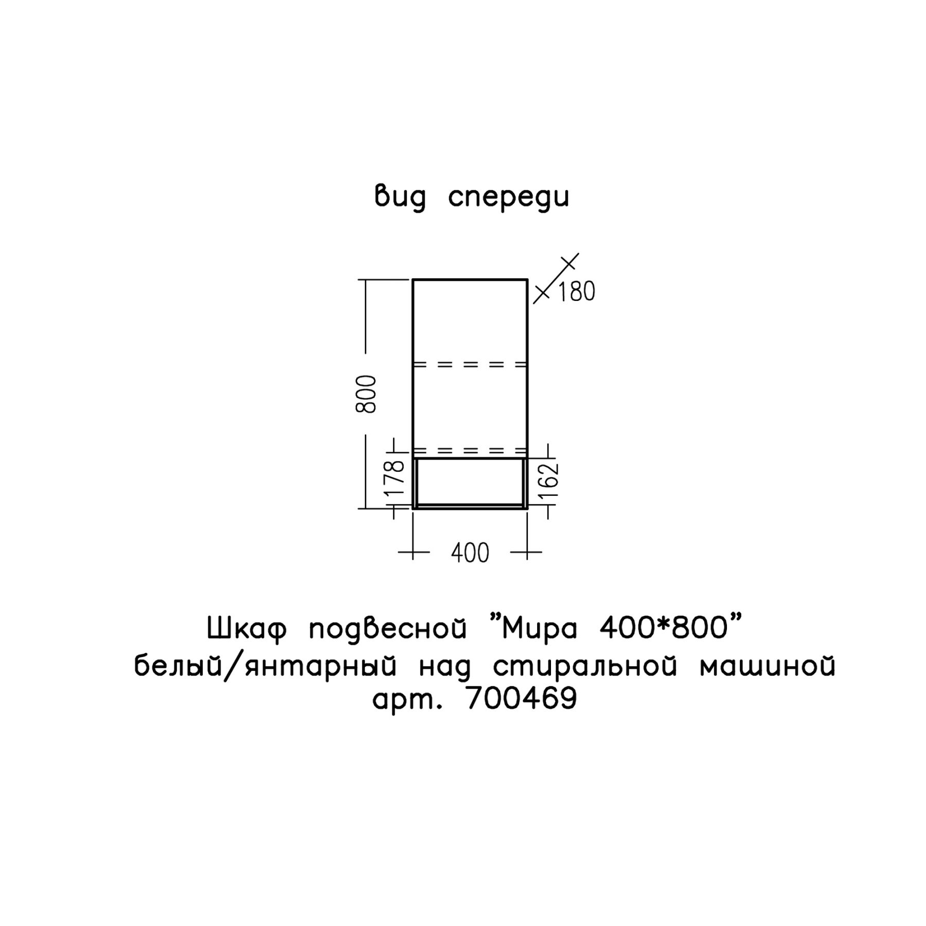 Шкаф Санта Мира 700469 над стиральной машиной 40 см разобранный янтарный/белый купить