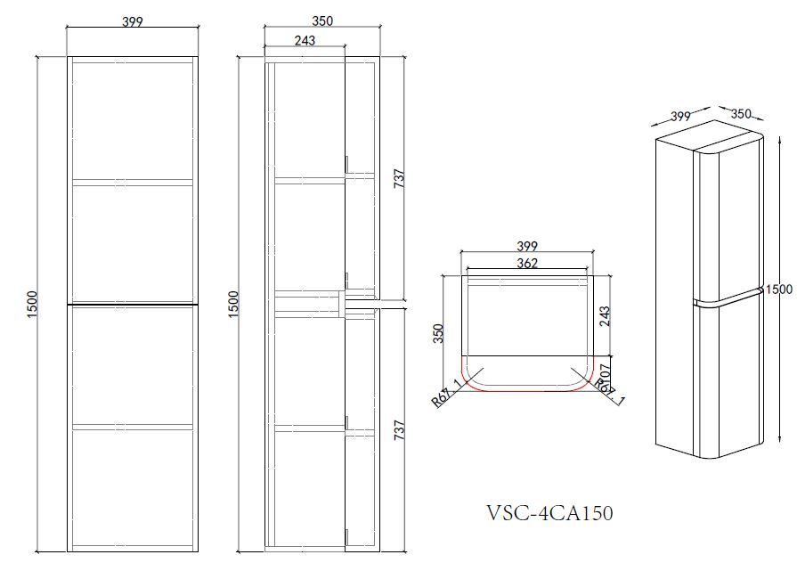 Шкаф Vincea Caprise VSC-4CA150MG-R подвесной, правый, 1500*404*350, серый матовый