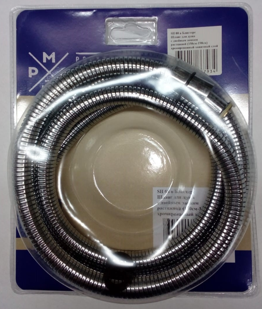 Шланг для душа РМС SH-08 с двойным замком 150-190см нержавеющая сталь