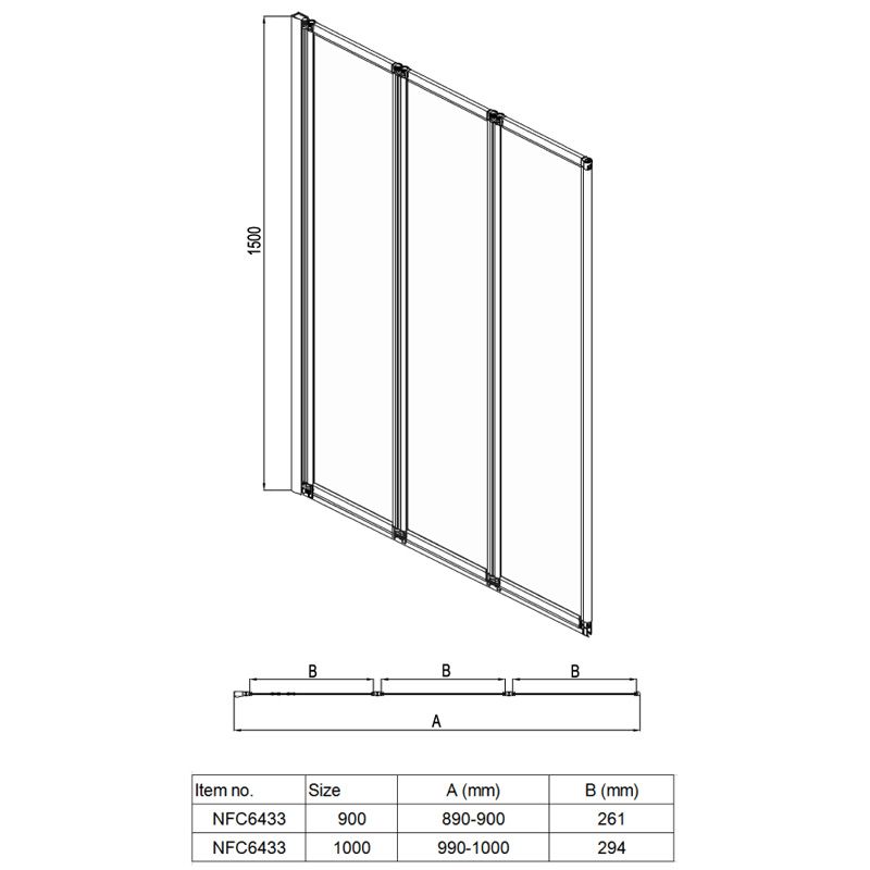 Шторка для ванны AZARIO PRESTON AZ-NFC6433 900