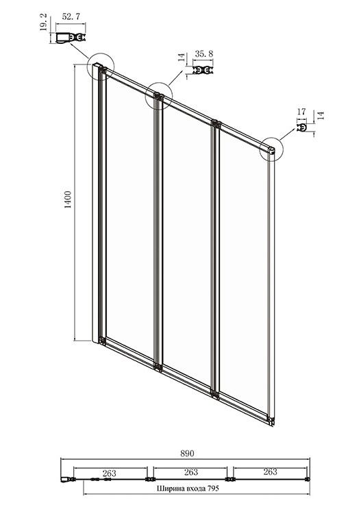 - Душевая шторка с складной дверью