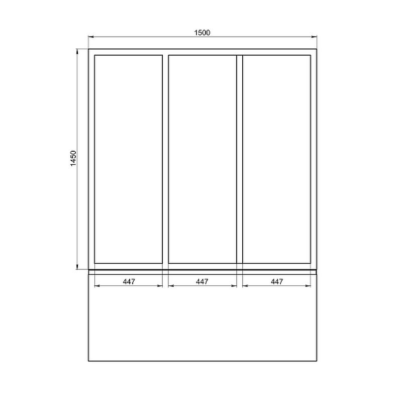 Длина: 150 см. Высота: 145 см. Ширина проема: 90 см. Толщина стекла: 2,8 мм.
